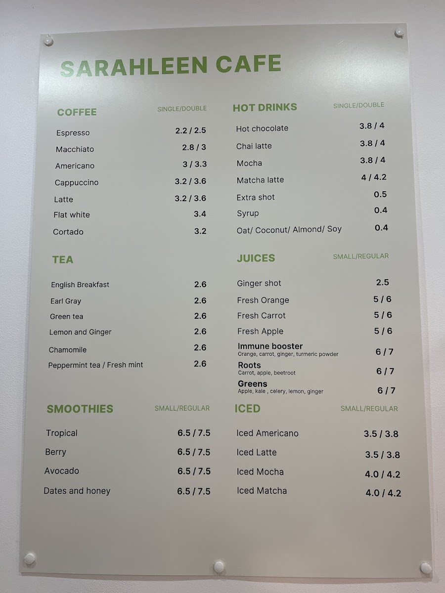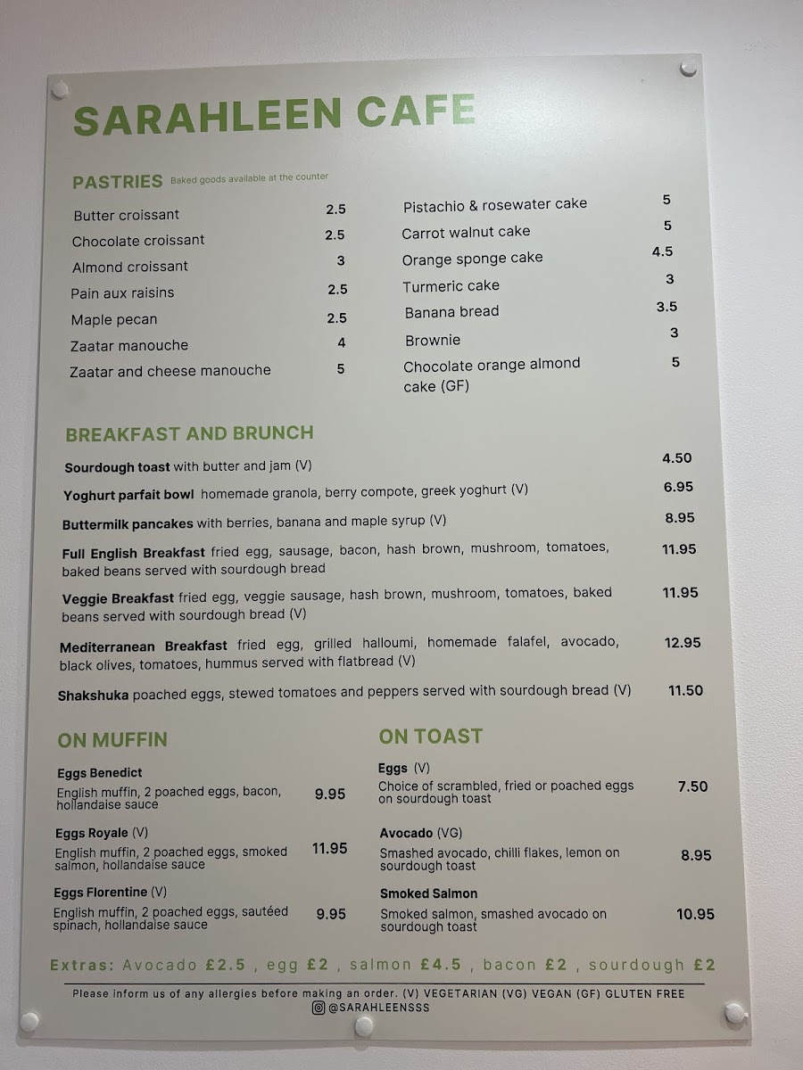 Sarah Leen Café Menu